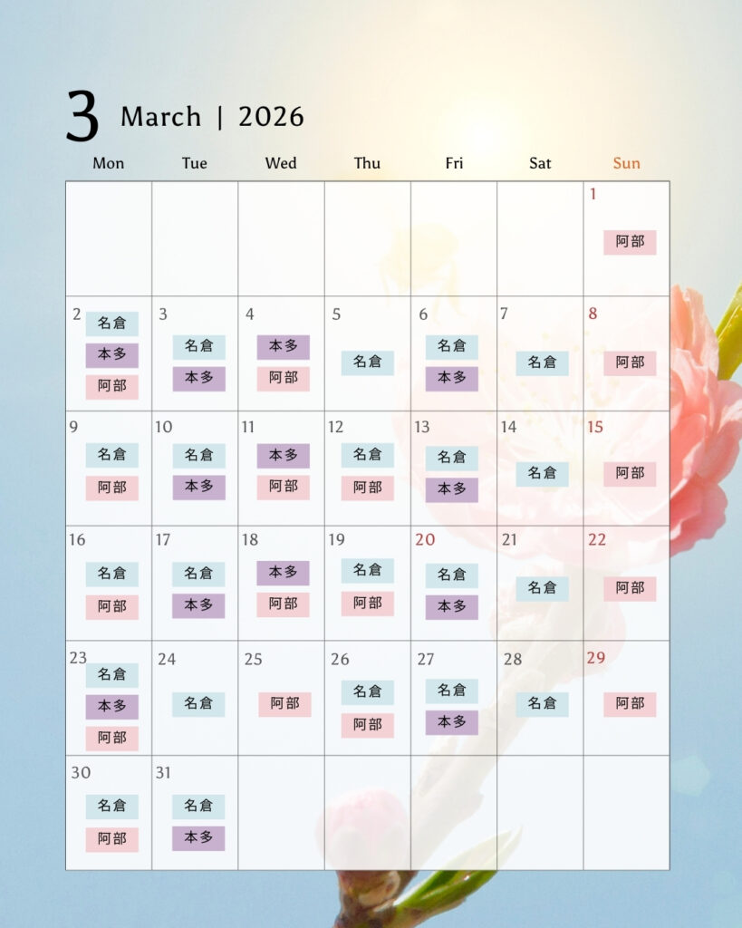 出勤スケジュールをお知らせいたします。